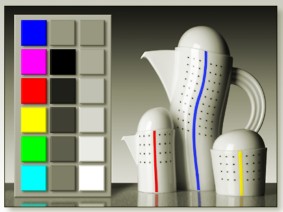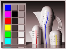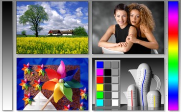 Öffnen Sie ein Bild in Ihrem Bildbearbeitungsprogramm., das möglichst ein breites Farbspektrum aufweist und möglichst auch Flächen enthalten soll die neutralgrau, weiß und schwarz sind. Ideal sind sog. Testbilder (siehe nebenstehendes Bild)., die man oft auf Heft-CD's von Foto- und Computerzeitschriften findet, die sich mit der digitalen Fotografie und Bildbearbeitung befassen. Regeln Sie nun mit den Reglern am Monitor die Helligkeit, den Kontrast und (wenn möglich) auch die Farbe, damit das Bild wirklichkeitsgetreu erscheint. Die Bilddatei zum Kalibrieren können Sie