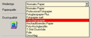 Ggf. können Sie noch im Druckermenü weitere Einstellungen vornehmen, bitte halten Sie sich in jedem Fall an die Empfehlungen des Druckerherstellers und die Hinweise in der Papierpackung. |